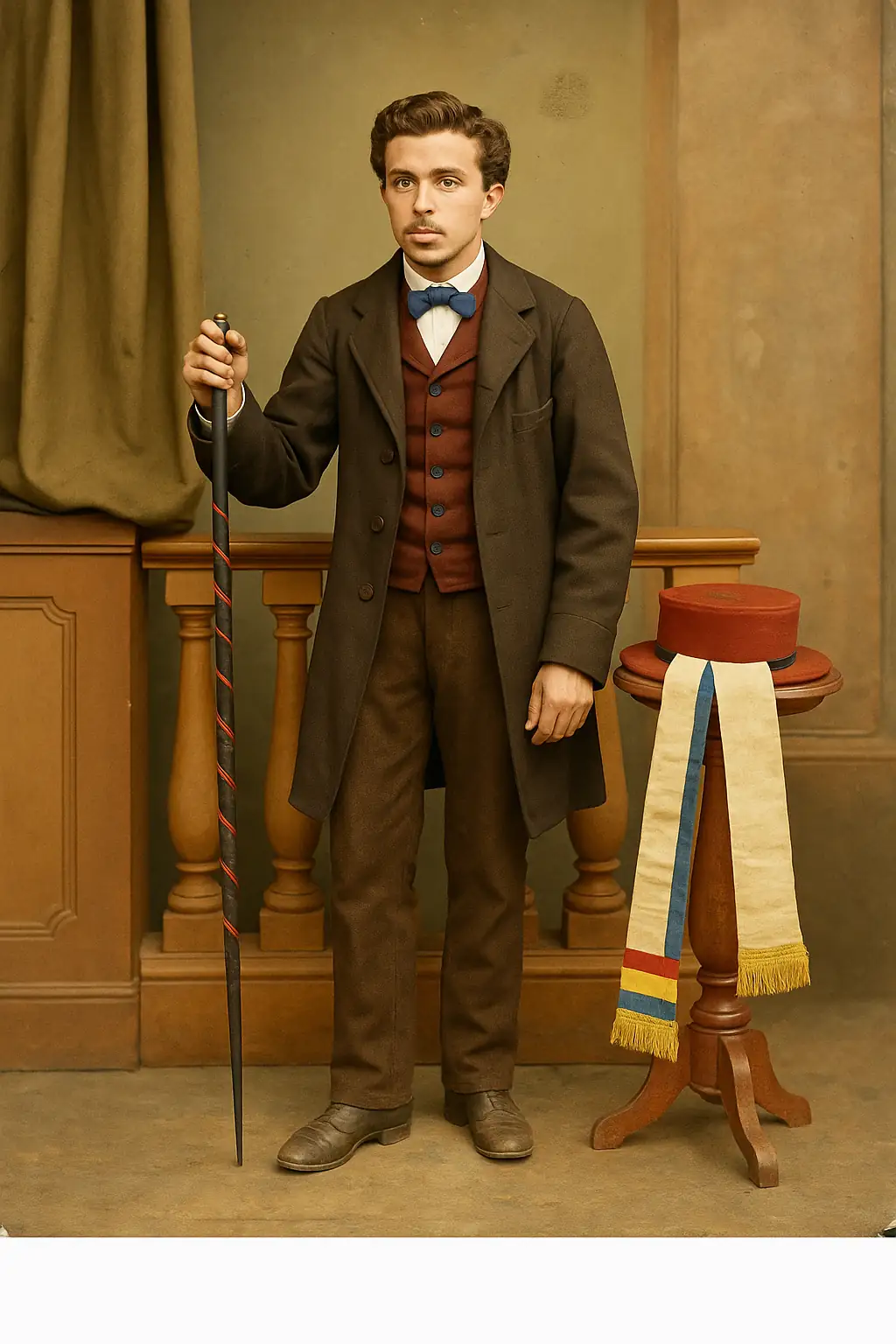 L’inventeur de Toi-Sol est issu d’une lignée de couvreurs qui s’étend sur huit générations. Il découvre les toitures dès 1982, en travaillant comme couvreur sur les chantiers de l’entreprise familiale, dans la continuité d’un savoir‑faire transmis de père en fils. Cette photo de son arrière arrière-grand-père, compagnon du Tour de France et Maitre couvreur (prise vers 1870, puis restaurée et colorisée par IA), illustre cet ancrage historique et ce lien familial avec le métier.