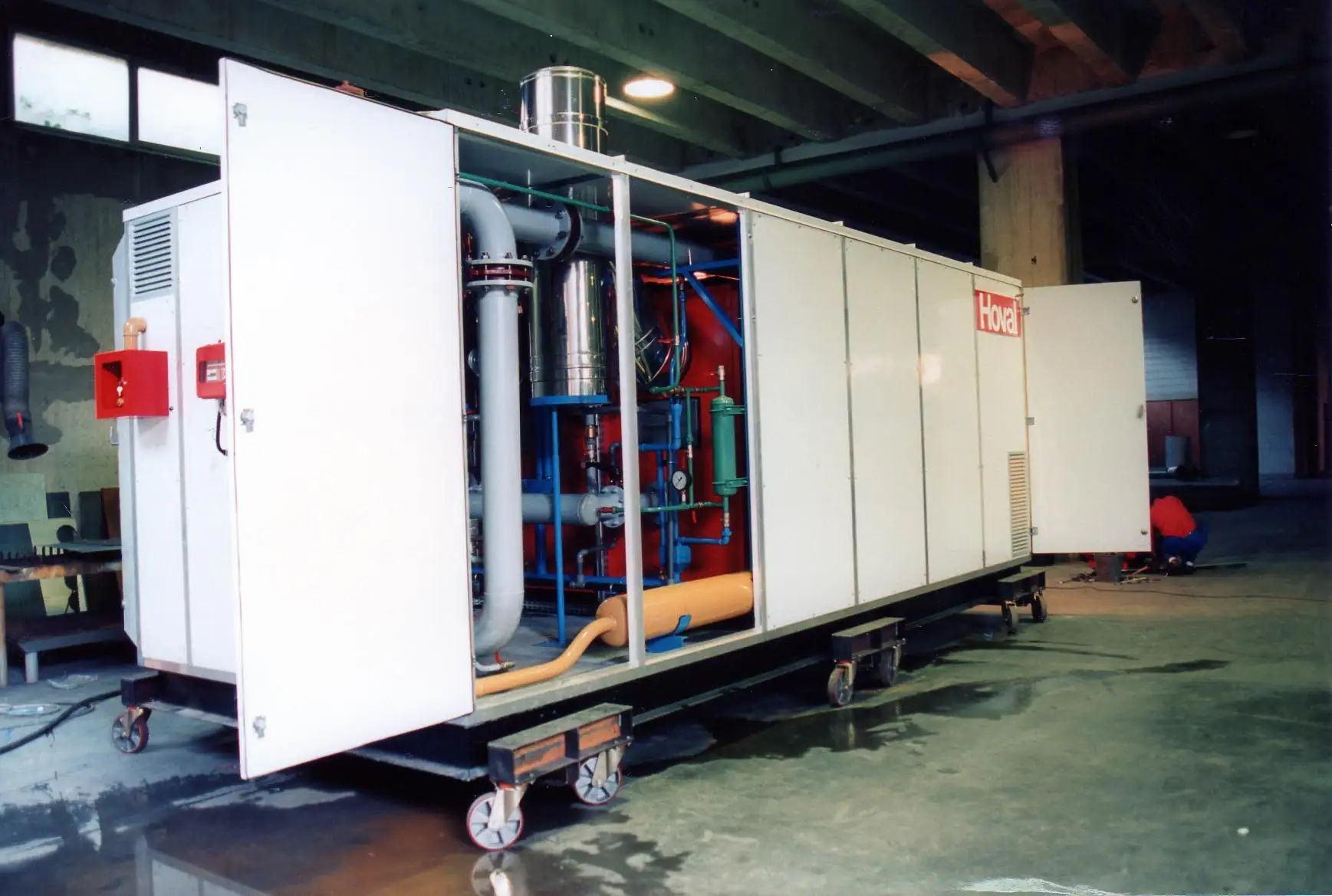 Dans les années 1990, Frédéric Marçais commercialise, en tant qu’ingénieur des ventes chez Hoval, de grandes installations thermiques au gaz et au fioul, notamment des chaufferies préfabriquées de toiture pour des bâtiments emblématiques comme le siège de Gaz de France en 1994 comme en témoigne cette chaufferie de toiture présentée sur la photo qui suit. Cette expérience complète ses compétences de couverture par une solide expertise thermique